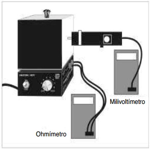 voltímetro (en la escala de los mV) al sensor de radiación, como se indica en la